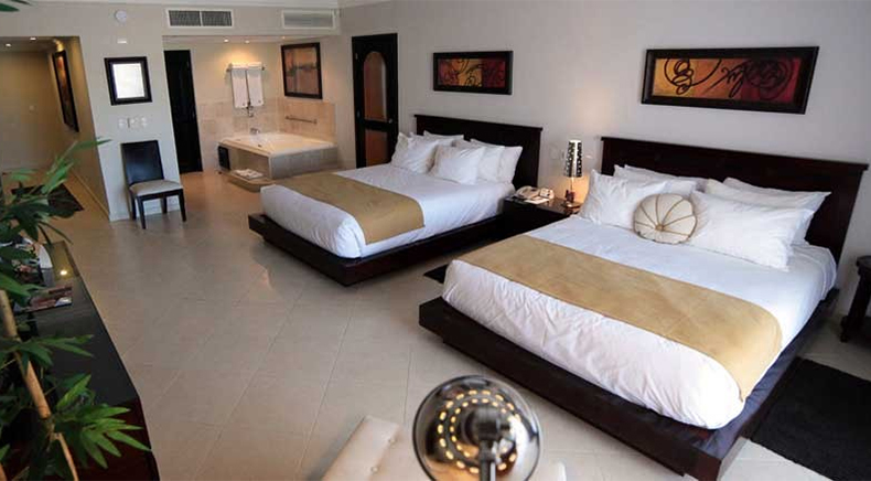 The Presidential Suites offer a matchless vacation experience for the most discriminating traveler. All suites have air conditioning, cable television, phones, and ceiling fans, while the décor has a distinctive modern design, featuring cherry wood furnishing and stainless steel. Shaded patios and verandas provide a relaxing place to gather. On Property amenities include: a large centralized pool with waterfall; Jazz, a French Fusion Restaurant; Bourbon Street bar; three tennis courts; and a full-press lighted basketball court.
