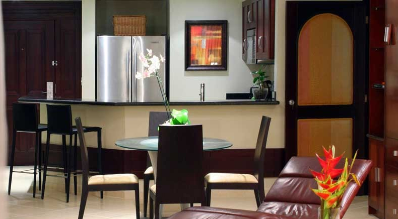 One-Bedroom and two-bedroom spacious and comfortable suites distributed in twelve 3- story buildings with garden, mountain or pool view, each equipped with: Living room with fully equipped kitchen with refrigerator, stove, microwave, coffe maker and blender. dining area with pull down Murphey bed; One or two private bedrooms; Private bathrooms; Air Conditioning; Ceiling fan in living; Direct Dial Telephone; Cable TV; Safe; Coffee Maker; Iron and ironing board; Radio-Alarm clock; Large balcony or terrace; Hair dryer; One King size bed.