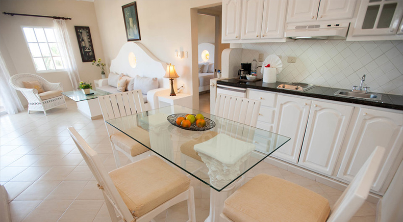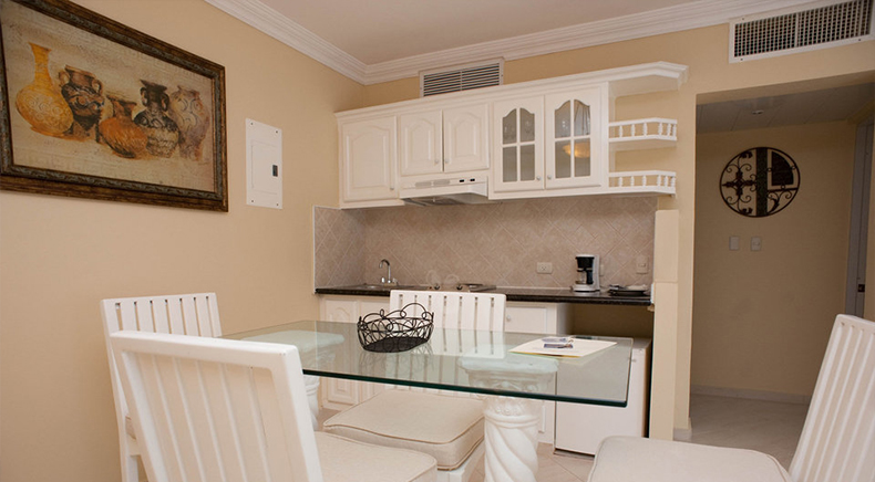One-Bedroom and two-bedroom spacious and comfortable suites distributed in twelve 3- storey buildings with garden, mountain or pool view, each equipped with: Living room with fully equipped kitchenette and dining area; One or two private bedrooms; Private bathrooms; Air Conditioning; Ceiling fan in living; Direct Dial Telephone; Cable TV; Safe rental; Coffee Maker; Iron and ironing board; Radio-Alarm clock; Large balcony or terrace; Hair dryer; Mini-fridge; One King size bed.